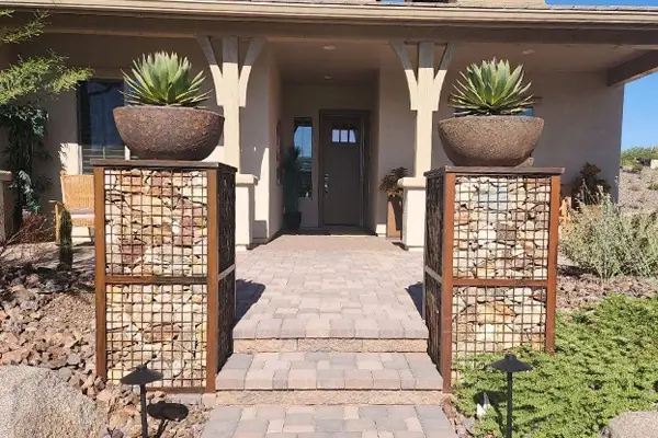 Pair strength and natural beauty with gabion pillars and walls, using stone-filled metal frameworks to add structure and timeless character.