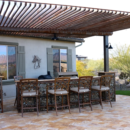 Bring strength and natural beauty together with custom gabion pillars and walls. Using durable metal frameworks filled with stone, these structures provide both function and aesthetic appeal. Ideal for retaining walls, property accents, or decorative features, our gabion designs are built to withstand the elements while enhancing the character of your landscape or entryway.